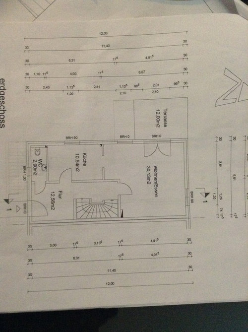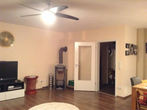 Kommentare (5)Nun, das ist immer schwierig ohne etwas mehr zu wissen. Wir kennen euch ja nicht. Wer wohnt da, welche Gewohnheiten, Vorlieben... Also ganz neutral finde ich das Wohnzimmer schon ganz gut. (Mit meinen Angaben orientiere ich mich am Grundriss.) Ich würde Sofa und Schrank auf der rechten in eine Flucht bringen, das Sitzensemble einen Tick nach rechts rücken (ergibt sich dann eh vor Ort) und ich würde ihm einen Teppich gönnen, um eine Sitzinsel zu definieren. Ich gehe mal davon aus, dass euch wie mit die Küche nicht ganz zusagt, da es doch recht gedrängt ist. Das kann man ein kleines bisschen entschärfen, in dem man auf die Fensterseite eine Bank stellt. Ich persönlich würde die kurze Wand wegnehmen, um mehr Möglichkeiten zu haben, auch wenn dann die Küche nicht mehr abgeschirmt ist, was wahrscheinlich euer Ansinnen war. Ich habe mal zwei Möglichkeiten skizziert: A Wand weg, Zweizeiler mit Halbinsel B L-Küche mit Hochschrankwand rechts und Essgruppe mittig. Blockiert zwar den Ausgang nach draußen etwas, aber dafür gibt es mittig nicht so viel Freifläche....mehr- vor 10 Jahren