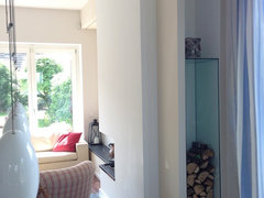 Kommentare (7)Ich kann mir gut vorstellen, die Wandschrank einfach bis zur rechten Wand zu ziehen. Dann wäre die "Lücke" vorm Fenster bzw. du hättest gar keine tote Ecke mehr. Und auch der Vorhang würde nicht in einer dunklen Ecke verschwinden. Wenn kein Bedarf an Arbeitstisch besteht, würde ich keinen als Lückenfüller dahin stellen. Wenn man dann noch eine kleine Lampe rechts ins Regal stellt oder einen anderen Blickfang, hat man auch vom Treppenhaus einen einladenden Blick. Grundsätzlich finde ich es schöner, wenn man vom Sitzplatz zum Fenster schaut. Wie wäre es, wenn du eine Sitzecke schaffen würdest also eine zweite Couch, Bank oder Ähnliches neben dem Kamin? Oder die bestehende Couch umstellt, aber das wäre unter Umständen ungünstig zum Fernsehen....mehrBeleuchtung im Wohnzimmer