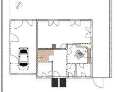 Die Befürchtung hinsichtlich Gestank hatte ich auch schon. Andererseits wären wir doch nicht die Ersten, die solche Ideen umsetzen, oder? Gut...wenn ich mir überlege, dass mein Schatz seinen Diesel (grundsätzlich) rückwärts in die Garage fährt, das Tor schließt und durch die Schleusentür das Haus betritt...hm. Es gibt mit Sicherheit schönere Gerüche. Vielleicht fällt ja tatsächlich jemandem eine andere Variante ein, hier der gesamte Linke Teil des Hauses als Grundriss: