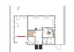 Daher anbei mal der abgeänderte Grundriss. Rot ist das neue Garagentor. Ob ihr vorne nur das Tor entfernt und links z.B. eine Bank macht oder die Öffnung vergrößert ... – erst einmal geht es nur um das grobe Wie.