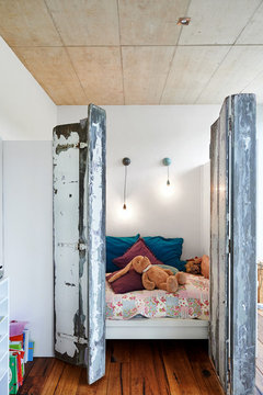 Kommentare (9)Hallo Tobias, herzlichen Glückwunsch auch von mir. Es ist richtig, dass ein Baby wirklich nicht viel und auch zu Beginn kein eigenes Zimmer braucht. Aber... Es geht ja auch immer um den Stolz der jungen Eltern und dem Wunsch dieser Freude und Bedeutung im neuen Leben Ausdruck zu verleihen. Warum fahren wir unsere Kinder z.B. in einem tollen Kinderwagen und nicht in einem "Wäschekorb auf Rollen" durch die Gegend. Warum suchen wir stundenlang nach niedlichen oder coolen Outfits für den Zwerg?.... Warum macht es uns so unendlich viel Spaß ein tolles Babyzimmer zu planen und einzurichten?... Es ist Liebe und das ist wunderschön. Ich habe mir daher "sozusagen als Geburtsgeschenk" für Sie erlaubt ein Kinderzimmer in Ihren Raum zu setzen. Es ist nicht ganz puristisch aber ich habe Ihre Wunschfarben blau/weiß eingearbeitet. Ich habe mich im Gegensatz zu Wunderkammer ganz bewußt dafür entschieden die Sichtachse durch den Raumteiler zu unterbrechen um der Stillzone mehr Privatsphäre zu geben. Die drei Billy Regale habe ich zum Raumteiler umfunktioniert und mit einem gestreiften Dach zu einer Einheit zusammen wachsen lassen. Dieser Raumteiler splittet den Raum in den vorderen "Actionbereich" mit Wickelkommode, Kleiderschrank und einer kleinen Tafel (der Zwerg hat ruckzuck in einem guten Jahr Spaß an ersten Malversuchen). Das niedrige Billy hätte noch neben der Wickelkommode Platz. Betont wird diese Zweiteilung durch den farbigen Streifen in Wandfarbe, der auch über die Decke verläuft. Hier hängen auch ein paar Wölckchen am Himmel... Ein Teppich unterstreicht diese Zone und lädt zum gemütlichen Spielen ein. Für eine schöne Wandgestaltung habe ich an die linke Wand gedacht, denn diese steht beim Betreten des Raumes im Fokus.. Der hintere Bereich des Raumes ist die Ruhezone. Hier stehen das Bettchen mit gesteiftem Dach (hier findet ein Mobilee Platz) für behüteten Schlaf und ein bequemer Sessel zum Stillen auf einem runden Teppich. Bücher zum Vorlesen/ Angucken und an der Wand finden die ersten Fotos vom Spross auch Platz. Der Sessel könnte ebenso ein Schaukelstuhl ein, der sich zum Öffnen des Fensters schnell beiseite schieben lässt. Ich habe eine Lampe mit Blendschirm von der Decke pendeln lassen, hier kann aber ebenso gut eine Stehlampe Platz finden. Zum Thema "Mitwachsen": Wenn der Zwerg größer ist kann an die Stelle der Wickelkommode ein Tipi Zelt gestellt werden. Hier kann er sich gemütlich zum Spielen und Lesen "verstecken". Das Bettchen kam an dem selben Standort gegen ein größeres Modell ausgetauscht werden. An dem Platz des Sessels kann später eine kleine Spielecke und noch sehr viel später ein Schreibtisch gestellt werden...Zukunftsmusik...Sie fangen im wahrsten Sinne des Wortes "ganz klein" an... Ihr Schreibtisch wird ja eh ausgelagert und da bleibt nur die Frage nach dem Sofa... Ich habe mich für einen Sessel entschieden, denn Ihr Sofa hat keine Armlehnen und erschien mir zum Stillen nicht so kuschelig bequem. Es bindet viel Platz in dem Raum und vielleicht sehen Sie ja die Möglichkeit darauf zu verzichten. Sie sehen, es braucht neben Mobiiar und ein wenig Handarbeit nicht viel um aus dem Büro ein Babyzimmer zu gestalten. Aber halt das "richtige Wenige" um dem Raum groß rauskommen zu lassen. Bei Interesse an weiteren Perspektiven einfach unter meinem Projekt Sketch ME up 10 stöbern. Alles Gute für Sie und viel Freude an dem kleinen Mann! Freundlicher Gruß, Sigrid Gutberlet FINDHUS...mehrVollsanierung: Altes Siedlungshaus Aufteilung