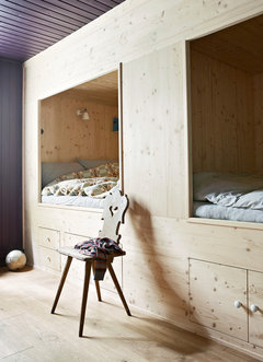 Niedrige Schräge im Kinderzimmer, Thema Alpenhütte