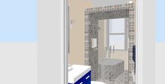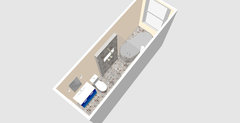 Kommentare (4)Hallo Melanie, wir möchten empfehlen, den Raum nur dort zu fliesen, wo es unbedingt nötig ist. Zum Einen verkleinern große Muster (Fliesenraster) zusätzlich den Raum, zum Anderen tragen verputzte und gestrichene Wände zur Wohnlichkeit bei. Daher schlagen wir vor, das Bad nur im Wannenbereich an den Wänden (raumhoch, falls Sie dort auch duschen, sonst halbhoch) und auf dem Boden zu fliesen. Im Bereich des Waschtisches ist nicht zwangsläufig ein Spritzschutz nötig, es sei denn Sie waschen sich dort auch mal die Haare. Für die Wände hinter Waschtisch und WC empfehlen wir Ihnen abwaschbare Farben, Tapeten oder Putz. Sie können auch mit der Auswahl und Platzierung von Farben die Raumwirkung beeinflussen. Ein dunklerer Boden beispielsweise weitet den Raum nach den Seiten und oben, mit einer dunkleren Stirnwand kann man die Tiefe eines Raumes optisch verkürzen. Da kleine Muster den Raum größer wirken lassen, ist die Wahl des Mosaiks im Wannenbereich nur zu empfehlen, wenn sich die Badewanne weiterhin auf der Längsseite des Raumes befindet. Daher unser Vorschlag: ein dunkler Boden + gezielt eingesetzte Wandfliesen im direkten Nassbereich in einem helleren Farbton + verputzte und gestrichene Wände. Zusätzlich könnte man die Stirnseite in einem abgestimmten mittleren Farbton streichen um die Tiefe des Schlauchbades optisch zu verkürzen. Viel Spaß mit dem Umbau! Viele Grüße aus Berlin Goldmann Badmanufaktur...mehrGrundrissoptimierung bzw. Einrichtung eines Neubaus