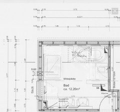 Kommentare (13)Hallo IFI, dasHaus ist aus 1963. das Bad nutzen 3 Personen, 2 davon Teens. Unser Verwandter ist Handwerker, aber leider hat er keine Ideen. Die Anschlüsse wollten wir möglichst nicht verlegen. Bisher hatten wir Wanne,, WB+!UnterschrankI, StandWC. Da über dem Badfenster ein großer Balkon ist,ist es auch recht dunkel im Bad. Ich hab ein paar Ideen: Im baugleichen Bad eine Etage höher haben wir quer vors Fenster große Duschwanne und eine Glaswand. Das Geputzte funktioniert mit den Kindern nicht und mir ist im Winter vorm Fenster kalt beim Duschen. Meine Idee wäre ein neues, schmäleres aber höheres Fenster, sodass eine größere Ecke entsteht. Darein eine 5-Eck Duschtasse, oder falls möglich (Muss man nach Entfernung der Wanne sehen) bodengleiche Dusche. beidseits schmale gemauerte Wände bis ca. 1,20m, obendrauf Glasscheiben. An der Längswand an die Duschwand anschließend ebenfalls gemauert und gefliest eine Ablage mit einem Aufsatzwaschbecken. Darüber ein Wandwasserhahn. Dafür müsste man einen Vorsprung machen, denke ich, für die Anschlüsse? Das nächste Problem ist die Tür. Zur Zeit misst sie 54 cm und hat Sägelöcher wg ehemaligem Gas im Bad. Außerdem geht sie nach außen auf und kommt damit einer anderen ins Gehege. Wir brauchen also ne neue. Geht da eine Schiebetür? Wie? Wenn es akustisch einigermaßen dicht sein soll? Auf der "Toilettenseite" muss auch ein Vorbau auf Höhe 1,40m, da dort neue Wasserrohre laufen, die man nicht in die Wand legen kann, da diese zu schmal ist. Dort könnte dann auch der Spülkasten rein. Obendrüber die Heizung. Ach ja und natürlich Decke abhängen, superflachem Deckeneinbauleuchten, eine davon über der Dusche. was halten Sie...mehrwer hat Wohnküche Idee??? Hilfe