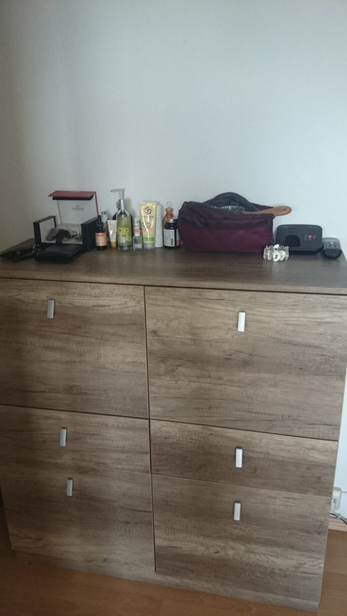 Brauche Tipps für die Farbe, die zu dieser Möbelfarbe im Flur passen