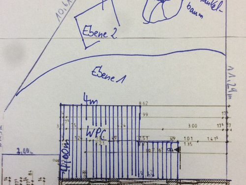 Kommentare (18)Hallo! Es wäre vorteilhaft für die Diskussion noch ein paar Bilder einzustellen: a) Hausgrundriss auf Grundstück mit Angabe wo Norden ist b) Ansicht des Bungalows vom "Gartenhausplatz" gesehen Es ist immer sehr vorteilhaft den Garten ähnlich dem Haus in "Räume" einzuteilen. Daher würde ich nur eine Terrasse am Haus, z.B. vorm Wohnzimmer , realisieren und eine weitere Terrasse vielleicht dort, wo das Gartenhaus stand oder aber woanders im Garten. Beispielsweise: Raum 1: Terrasse am Haus Raum 2: weitere Terrasse Raum 3: Vorgarten Raum 4: Gräserbeet Raum 5: Garten neben dem Bungalow Dann bekommt jeder Raum seine individuelle Planung mit Licht, Bepflanzung, Blickfang, ... Vielleicht soll "Raum 5 nur" von der Küche einsehbar sein und auch von der Strasse, aber die anderen "Räume nicht" usw. Indem Sie ihren Garten so einteilen, fällt Ihnen vielleicht die Planung einfacher und der Garten wird insgesamt spannender. Als verbindendes Element kann dann der Rasen fungieren, der von den mäandernden Beeten (flach oder hügelig) kurvig oder geradlinig begrenzt wird Wichtig dabei: Jeder "Raum" sollte über Strom (einschaltbar vom Haus (innen)) und eventuell über einen Wasseranschluss verfügen. Die Garten-Wasseranschlüsse sollten generell so sein, dass sie im Winter entleert werden können (z.B. am Absteller im Haus einen Druckluftanschluss einbauen, dann kann man sie vorm Winter ausblasen.) Überhaupt empfehle ich an mehre Orte im Garten Strom zu legen, deren Endpunkte (Lampe oder Steckdose) vom Haus geschaltet werden können. Im Dunkeln geht nämlich der Garten nur bis zum Licht der Lampe , dahinter ist es dunkel. Viele Leute verpassen ihrem Garten eine Terrassenbeleuchtung mit Pollerleuchten o.Ä.. Schaltet man dann das Licht bei Dunkelheit ein, sieht man Beispielsweise vom Wohnzimmer nur die Terrasse am Haus, aber mehr nicht. Da spart man eigentlich am falschen Ende. Auch das Sicherheitsgefühl ist wesentlich höher, wenn man jeden Raum beleuchten kann. Ich habe im Wohnzimmer eine Schalterleiste für 4 Aussenlampen und 6 schaltbare Steckdosen (verwendbar für Christbaum, Erdstrahler, Teichpumpe, Zisternenpumpe, Bachlauf, .....). Es gibt für mich nichts Schlimmeres als Verlängerungskabel durch den Garten. GESTALTUNG: Raum 1: Terrasse (eckig) am Haus mit Platten Raum 2: Terrasse (rund oder organische Form) gepflastert (rote und graue Pflastersteine, mit Natursteinpflaster eingefasst .... Das Natursteinpflaster (z.B. Granit) könnte dann auch "Raum 1" (Terrasse am Haus), die Hoffläche vor der Garage eingrenzen oder gepflasterte Wege vorm Haus oder ein Solitärgehölz einrahmen oder oder .... Es hat dann neben dem Rasen eine verbindende Funktion und es entsteht eine Gartenanlage mit nachvollziehbarem Konzept. Wenn man die verbindenden Elemente nicht aus den Augen verliert, kann man jeden "Raum" für sich planen und ausführen....mehrBrauche Hilfe bei der Planung vom Anbau