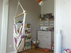 Kommentare (5)Guten Morgen Marie, Ich könnte mir einen ähnlichen Grundriss, wie von Anke beschrieben vorstellen. Den Platz an der rechten Wand würde ich auch für Schränke, Sideboards und evtl (später) einen kleinen Schreibtisch nutzen. An der gegenüberliegenden Wand würde ich mittig ein Bett platzieren, z.B.: Nature Kid Hüttenbett Noah, halbhoch Hier können die Kleinen Höhlen bauen, drunter und drin - sind geschützt durch die umlaufenden Einfassungen und wenn man das Dach so nicht leiden kann, könnte man über ein Tippi-Dach oder einen Baldachin nach denken, der sich über die ganze Wand verteilt. Mittig würde ich einen großen Teppich legen, der zum Spielen einlädt. Ergänzen würde ich einige "Stofftonnen" für Spielzeug und dekorative Vorhänge, deren Motiv sich evtl. in einer Wandgestaltung wiederfindet. Ich würde als Basis für Wände und Möbel einen neutralen Ton nehmen - ein Warmes grau / Weißtöne - diese kann man recht schnell durch den Tausch der bunten Dekoration in deren Optik verändern, ohne dass man den großen Renovierungsaufwand hat. Ergänzend sollte man schon früh über die Lichtsituation nachdenken - spannungsvolle Geschichten, wie Unterleuchtungen, Akzente in Raumecken, Lichterketten, ... sind für Kinder besonders aufregend und animieren zu phantasievollen Gedanken-Reisen und interessanten Spielwelten. Viel Spaß beim Gestalten und beim Möbelkauf - falls Fragen aufkommen sollten oder weitere Input nötig ist - einfach bei mir melden. Viele Grüße aus Hamburg, Patrick Ostheimer...mehrviele Ideen, zwei Meinungen und zu viel Platz
