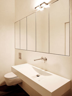Kommentare (50)Jede Idee muss ausgesprochen werden, dann geistert sie nicht mehr im Kopf rum :) **** Die gesamte Wand zum Schrank zu machen, sei es mit einem Überbau oder mit Schiebetüren würde in diesem Fall bedeuten, durch den Schrank zu gehen. Auch bei dem Einsatz von Schiebetüren (den Japanischen angelehnt), wäre dieser Eindruck gegeben, da zwischen den Türen noch dieser Raum des Schrankes ist. **** Anbei das Aufmaß mir der "Überbau-Lösung": Meine Idee: Wenn links die Schrankseite nur zur hinteren Wand hin verlängert wird und keine komplette Deckseite aufgelegt wird, ist tatsächlich eine gleichmäßige Aufteilung links und rechts der Zimmertür möglich. Ich empfehle, den Kopus in "standard" zu wählen, und dann einfach etwas Lack in Frontfarbe zu kaufen, und damit dann die komplette (verlängerte) Sichtseite zu lackieren. Das spart gegenüber einer kompletten Korpuslackierung enorm (ich hab mich mal auf der genannten Webseite umgeschaut). Platte Nr. 5 wird zur Rückwand hin so ausgeklinkt werden müssen, daß sie überall gut an der Wand anliegt. Alle verbleibenden Fugen werden mit Acryl gedichtet, sobald alles steht. Natürlich liesse sich in (3) eine Öffnung einschneiden und ein einfacher Regalrahmen zB. aus dem Holz des Bodens einschieben. Es sähe (solange es nicht genutzt wird) sicher nicht schlecht aus...^^ wenn der Überbau selbst gebaut werden würde, wären das 25,- für das Plattenmaterial, ca. 15,- für Schrauben, nochmal 15,- für 2K-Spachtel (Schraublöcher und Plattenübergänge) und 15,- für Acryl. Zzgl. Tapete, Kleber und Lack wären das neben 3 Tagen Aufwand rd. 130,- €...mehrDuschbad EG - Planung neu - Ideen?