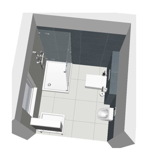 Kommentare (6)Hallo Carmen, Sie können in Ihrem Bad für mehr Komfort und Bewegungsfreiheit sorgen falls irgendwann ein Rollator notwendig werden sollte. Die Tür sitzt eher unglücklich mittig im Raum und geht obendrein in diesen auf. Daher finde ich die Idee einer gut schließenden und in der Wand laufenden Schiebetür angebracht. Ich würde diese falls noch möglich versetzen und dann die drei Objekte an der Wand zur Küche platzieren. Ihr Architekt hat nur ein ein kleines Handwaschbecken gesetzt um den Zugang zum Wc nicht zu blockieren. Durch die Reihung an einer Wand können Sie ein normales Waschbecken mit Unterschrank setzen. Ich persönlich würde in dem Raum bereits jetzt ein Gefälle Ri Duschecke planen, welches über die reine Duschnische hinausgeht. Zunächst hätten Sie eine Glastrennwand aber sollte der Tag X kommen an dem Sie mehr Platz in der Dusche benötigen kann die Glasscheibe einem Duschvorhang weichen. Das Wasser findet durch das bereits vorhandene Gefälle seinen ordnungsgemäßen Weg zur Ecke. Beidseitig des Wc's wäre Platz für Stützgriffe. Die Vorsatzschale müsste im Hinblick auf diese Option bereits ausgesteift werden. Durch die Verschiebung der Türöffnung und den Einsatz einer Schiebetür hätten Sie die maximale Raumausbeute für mehr Beweglichkeit. Herzliche Grüße, Sigrid Gutberlet von FINDHUS...mehrRaumaufteilung kleines Bad und Gäste-WC