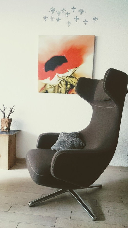 Kommentare (18)Hallo, Wilhelm! Wir bauen zwar überwiegend Bäder - haben aber dennoch viel mit Inneneinrichtung zu tun. Aus meiner Sicht wäre eine schnelle und bezahlbare Lösung zunächst wirklich die Sache mit den Bildern an der großen Wand und auch an der kleinen neben der Küchenzeile. Damit das Ganze nicht "konzeptionslos" sondern vor allem "gemütlich" wirkt - wie Du ja auch geschrieben hast - würde ich hier ganz viele kleinere Bilder aufhängen, die aber alle die gleiche Rahmenfarbe haben - um dabei die "Tristesse" ein wenig zu bekämpfen, würde ich die Rahmenfarbe von dunkelbraun bis schwarz wählen - welche Motive Du dann in die Rahmen reinpackst, ist eigentlich egal. Wichtig ist nur, dass es viele sind, die dann ein wenig "durcheinander" angeordnet werden. Das könnte zB. so aussehen: http://freshouse.de/wp-content/uploads/2015/01/wei%C3%9Fe-wand-mit-schwarzen-bilderrahmen-dekorieren.jpg http://2.bp.blogspot.com/-V3ti2NnAvmA/UoPqbT3Pn_I/AAAAAAAACCE/Pbeub7dDGnE/s1600/Familienfotos-an-die-Wand-wohnzimmer-schwarz-wei%C3%9F.jpg Eine etwas aufwändigere aber sehr effektvolle Lösung wäre dann, die Wandfarbe zu verändern - wie Du in dem unteren der beiden Fotos siehst, bringt die pastellig-greige Wandfarbe unheimlich viel Gemütlichkeit in dieses Bild. Diese Farbe würde übrigens auch gut zur Deiner Küche passen! Für die Farbauswahl empfehlen wir Farbfächer der Firma Farrow&Ball oder Little Greene - gibts im Internet kostenlos. http://eu.farrow-ball.com/pws/ProductDetails.ice?UniqueProductKey=700011 Als letzten "schnellen" Tipp fände ich eine Holzjalousie vor dem großen Fenster noch sehr schön - die geben auch immer viel Gemütlichkeit... Viel Spaß beim Dekorieren - und wenn Du mal Fragen zum Bad hast, bist Du bei uns natürlich auch 100% richtig!...mehrAlte Holztreppe versus neue Stahlwangentreppe