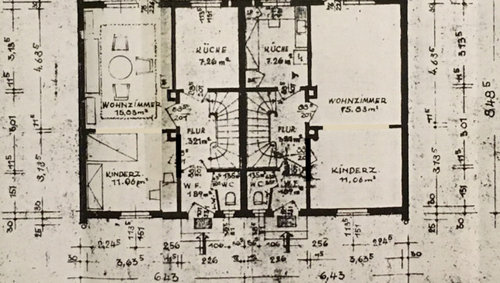 Der Grundriss, den wir vom Haus haben, passt leider in einigen Bereichen nicht. So stehen im EG laut Bauplan die Wände bei Schornsteine falsch. Diese sind real bündig in die Räume, was diese rund 30cm schmaler macht, als angegeben. Die als Kinderzimmer bezeichneten Räume sind jeweils Esszimmer.