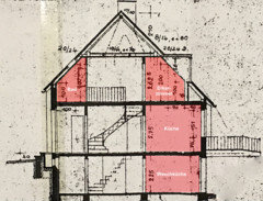 Kommentare (32)Für die Betrachtung der Fassadenteilung wäre es wichtig, die horizontalen Unterteilungen (Balkon und Dachterrasse mit Geländer) und die Staffelung in der Tiefe (Anbau-Fassade-Loggia) ebenfalls darzustellen, da diese das Gebäude sehr viel mehr gliedern als alle Fenster zusammen. Außerdem wäre es hilfreich, wenn Sie den tatsächlichen Boden darstellen, die Erdgeschossfenster also "unten aufsitzen". Wenn Sie außerdem wie für die Vorderseite auch eine Ansicht mit Darstellung des Nachbarhauses haben, lässt sich auch daran gut die Wirkung der Fassade im örtlichen Zusammenhang erkennen - was besonders bei einem Reihenhaus nicht zu vernachlässigen ist. Die asymmetrische Fensterteilung der Terrassentüren finde ich proportional und stilistisch schwierig. Im Bestand ist das Gestaltungskonzept ja prinzipiell: Seitlich je ein vor- oder rückspringender Gebäudeteil mit einem großen Fenster unten und über einer stark wahrnehmbaren horizontalen Linie einem stehenden, bodentiefen Element im Obergeschoss. Die Mitte bildet den zurückhaltenden, ruhigen Teil mit zwei gleichen, unauffälligen Fenstern. Wenn Sie nun durch ein großes, bodentiefes Element den Mittelteil betonen, wird diese Einteilung bzw. Gestaltung aufgehoben und es bilden sich neue Verknüpfungen. Diese müsste man zeichnerisch ergründen und versuchen, eine als angenehm empfundene Ordnung und Schönheit herzustellen. Das Panoramafenster rechts zum Beispiel wird sich neben zwei bodentiefen Elementen mit vertikalen Flügeln mit großer Wahrscheinlichkeit seltsam ausnehmen, wenn es nicht an anderer Stelle des Hauses eine Entsprechung findet. Das könnte zum Beispiel das mittlere Kinderzimmerfenster werden, so dass oben in der Mitte und unten rechts ein vielleicht mit einem Rahmen oder Faschen betontes liegendes Format wäre und der Rest der Fassade aus stehenden, aneinandergereihten bodentiefen Formaten bestünde. Auch das muss man jedoch erst einmal darstellen, um es überprüfen zu können. Worüber Sie auch einmal nachdenken sollten, ist Ihr Plan, in nahezu jedem Raum eine andere Fensterart (Hebeschiebetür, Festverglasung mit Öffnungsflügel seitlich, zwei Öffnungsflügel) einzuplanen. Das erscheint für jeden einzelnen Raum zwar sinnvoll und praktisch, sorgt aber auch im Inneren für eine gewisse Unruhe. Schöner wäre auch hier eine Beschränkung auf ein nachvollziehbares Prinzip mit ein, zwei besonderen Abweichungen. Bitte verstehen Sie das nicht so, das sich der Grundriss und die Innengestaltung in irgendeiner Weise der äußeren Gestalt des Hauses unterordnen sollten - das sehe zumindest ich nicht so. Aber da Sie Ihr Haus nun einmal nicht nur raumweise und auch nicht nur von innen erleben, stellt eine zusammenhängende, harmonische Gestaltung schon auch eine täglich wahrnehmbare Qualität dar. Mir ist klar, dass das im Bestand nicht einfach umsetzbar ist, es lohnt sich jedoch, sich auch damit auseinander zu setzen....mehrAuf 20 qm Wohnen & Essen für die Großfamilie