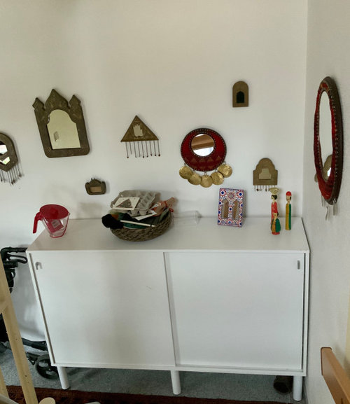 Kommentare (24)Hallo Tanja, die Idee ist schon mal angesprochen worden und macht meiner Meinung nach auch Sinn. Das Doppelbett steht in der Niesche am besten, es bleibt auch noch genügend Platz für den Kleiderschrank. Die auskragende Bettkante wird durch ein Regal dahinter etwas abgeschwächt. An der Decke würde ich eine Gardinenschiene anbringen, so dass das gesamte Bett mit zwei schönen leichten weißen Vorhängen zugezogen werden kann. Von meinen Kunden weiß ich, dass die Kinder das ganz toll finden und plötzlich gern schlafen gehen. Der gesamte hintere Raum bleibt zum Spielen. Re und li jeweils ein offenes Regal (z.B. Kallax) stellen, (symetrische Anordnung macht den unruhig geschnittenen Raum harmonischer) für die jeweiligen Spielsachen der Kinder. Mit zwei gleichen Tischen und Stühlen gibt es dann auch keinen Streit und jedes Kind kann seine eigene Ordnung und Abgrenzung lernen. Zum besseren Verständnis hier meine schnelle Skizze. Freundliche Grüße Juana Fritsch...mehrGrundriss im EG und das Problem mit der Küchenplanung.