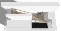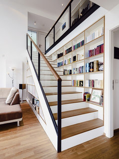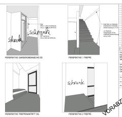 Kommentare (15)Hallo Astrid, ich möchte auch noch zwei Ideen in den Pool werfen. Ein paar Wände stehen zu lassen, hat den Vorteil, das man auch die Möbel unterbringen kann. ;-) Ebenso denke ich, dass ein abgetrennter Eingangsbereich sinnvoll ist. Wenn sich unter der Treppe kein Kellerzugang verbirgt, können Sie die Wand dort schließen und einen großzügigen Garderobenschrank unterbringen. Dahinter ergibt sich auch Stauraum für Unterhaltungselektronik, die an dieser Stelle nicht sofort ins Auge fällt. Küche, Ess- und Wohnbereich gehen ineinander über, mit einer langen Sitzbank. Ich kann mir gut vorstellen, dass die Wand zwischen Küche und Essbereich nicht ganz ohne Träger fallen kann, daher habe ich diese Linie beibehalten. Man könnte aber auch den Zugang zum Wohnbereich offen lassen - sicherlich die schönere Achse beim Betreten Ihres Hauses - und die Wand zur Küche beidseitig bespielen. So bekommen Sie eine kleine Garderobe und auf der Küchenseite Platz für Kaffeemaschine und Toaster. Unter dem Fenster würde ich halbe Küchenschränke bis unter die Fensterbank laufen lassen, da paßt eine Menge hinein. Im zweiten Entwurf habe ich die Arbeitsplatte im 45 Grad Winkel in den Essbereich hineinlaufen lassen. Daran schließt sich eine kleine Sitzgruppe an, die sich bei Bedarf erweitern ließe. Hier braucht es natürlich noch Finetuning, damit es auch wirklich wie aus einem Guß aussieht und nicht wie Gebastel (das ist bei kleinen Grundrissen immer das A und O). Viele Grüße NIC...mehrSteile Treppe. Hilfe.