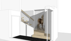 Wie einrichten? Windfang aus zwei Teilen mit Treppe verbunden