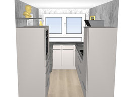 Kommentare (33)Da sind sich dann wohl alle einig ;) Auch wir sind zu der Erkenntnis gekommen, das der Anbau als eigenständiges Gebäude wahrgenommen werden soll. Was mir erst durch diese Diskussion klar wurde ist, was HH angemerkt hat, nämlich das der Anbau mit den kl. Fenstern aussieht, als ob das Dach fehlt.Vielen Dank für diese Erkenntnis HH. Wir werden ein grosses Fenster und seitl. Fenster (Richtung Ost und West) planen, angelehnt an die Einrichtung der Küche. Denn wo grosse Fenster sind fehlt leider die Fläche Regale und OS, die wünsche ich mir aber, weil ich bisher keine hatte. Liebe Frau Bushuven, herzlichen Dank für ihre Visualisierungen. Die Hausansicht sieht auf ihrem Bild sieht sehr stimmig aus, ich befürchte nur, wir werden die Fenster im Altbau nicht alle verändern können. Auch die Innenansichten gefallen mir ausgesprochen gut. Ein Blick vom Flur bis ins WZ war gewünscht und auf ihrer Darstellung sieht es genauso aus, wie ich es mir vorgestellt habe. Wir überlegen, die Insel ohne Kochfeld zu planen , evt auch etwas kürzer, damit zwischen Esstisch und Insel mehr Platz bleibt. Das würde mir besser gefallen. Wie es aussieht, darf der Anbau noch 60 cm länger werden (Richtung S/W). Dann rutscht der Block auch noch etwas tiefer und es bleibt mehr Platz bis zum Sitzfenster. Mir ist klar, das diese Plattform als Inspiration und Gedankenaustausch dient. Eine Detailplanung ihrerseits habe ich keinesfalls erwartet. Ich finde es wundervoll , dass hier ein so reger und Ideenreicher Austausch stattfindet, und das das für und wider der Projekte diskutiert wird. Eine wirklich tolle Unterstützung! Unser nächster Schritt wird die Küchenplanung sein, damit wir die Fensterflächen festlegen können. Um das eine zu entscheiden , muss ich wohl erst das andere etwas genauer unter die Lupe nehmen. Auch hier würde ich mich über weitere Unterstützung freuen. Aber vielleicht macht es Sinn ersteinmal in ein Küchenstudio zu gehen? Vielen Dank Heike für deinen Beitrag, euer Anbau wird bestimmt sehr schön und stimmig zu eurem Haus. Die Wiederholung der Farben und des Materials spielen dabei sicherlich eine entscheidene Rolle. Wir hoffen, dass das auch in unserem Fall gelingt....mehrWohnungsumbau für eine kleine Familie