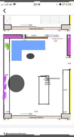 Die Wohnung befindet sich noch im Rohbau. Ich kann vieles ändern, aber eben nicht den Grundriss des Wohn-/Küchenbereiches und genau dieser Raum lässt mich nicht mehr ruhig schlafen. Ich bin natürlich glücklich und dankbar mir diese Wohnung überhaupt erlauben zu dürfen, daher handelt es sich sicher um ein Luxusproblem, dass ich meine Wünsche nur schlecht umgesetzt bekomme.