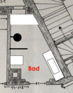 Falls dies eine Option wäre müsste die Möglichkeit der Leitungsführung geklärt werden. Ich sehe im Büro (ehemalige Küche) rechts im Eck eine Steigleitung, hier wäre aber zu prüfen ob sie auch für Schwarzwasser geeignet ist.