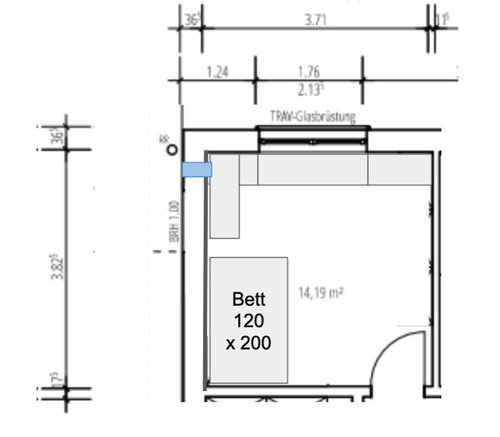 - Lüftung: Eine Herausforderung ist, dass sich eine Lüftungseinheit links des geplanten Schreibtischregales befindet. Diese muss weiterhin gut zugänglich sein, was die Planung ein wenig erschwert.