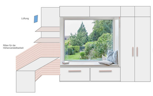- Oberhalb des Sitzfensters sollen ebenfalls Stauraum sein