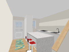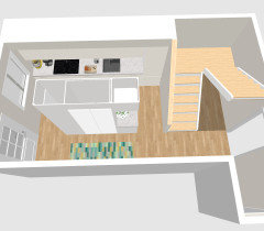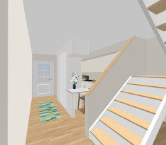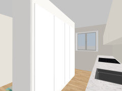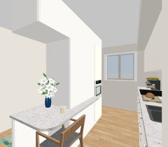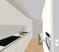 Kommentare (23)Hallo Johanna, du analysierst das ja sehr gut. Die Vor- und Nachteile sind klar. Und gilt es für euch abzuwägen, wo eure Prioritäten sind, was ihr unbedingt wollt, dann setzt man die eine Sache, die fix ist, und dann ergeben sich daraus die anderen. Deine Angst gilt vor allem dem Stauraum. Der Vorteil wäre ein fließender Übergang mehr ein Miteinander. Das aber möchtest du durch Querstellen von Schränken unterbrechen – wegen des Stauraums. Kosten klar sind immer ein Thema. Aber ich würde die Sorge erst mal außen vor lassen. Substantielle Eingriffe macht man am besten jetzt, später scheut man es wegen des Drecks und macht vielleicht Sachen wieder rückgängig, die man jetzt renoviert. Ich rate immer, das im ersten Schritt der Grund auf jeden Fall umgesetzt wird. Sparen kann man dann an Möbeln etc. Ich rate dir daher: 1. eine Stauraumplanung zu machen. Wie viel brauchst du wirklich? Was kann wo anders hin, z.B. Raclette in den Keller. 2. Im Haus mal entweder auf dem Boden abkleben oder besser noch mit Kisten mal die Wohnzimmermöbel stellen, damit ihr seht, ob es euch da zu eng wird. Ich mache mal einen Vorschlag, wie ich es mir vorstelle, dass es passen könnte: Die Wand zur Küche würde ich nicht versetzen, sondern an diese Hochschränke setzen (alle Küchenmöbel grün). Hier kann man überlegen, die Tür zu lassen oder für die Einkäufe eventuell auch nur eine Durchreiche zu planen. Dann eine Zeile rechts in der Länge wie jetzt Küche und Essen, die dann im Wohnbereich in eine Sitzbank (Stauraum drunter für Spiele, Geschenkpapier, Bastelsachen...) übergeht, mit der man dann insgesamt nicht ganz so weit in den Wohnbereich rein rückt. Den Wandschrank würde ich so lassen, könnte ja auch ein Bücherregal werden oder man könnte wenn man den Kücheneingang vorne zu macht, hier einen umsetzen, was den Blick vom Eingang direkt nach hinten zieht. Im Eingang würde ich die Abstellkammer auflösen und einen Garderrobenschrank (hellblau) direkt zum Flur stellen. Der dahinterliegende Raum (gelb) kann entweder der Toilette zugeschlagen werden als Dusche (falls oben nur ein Bad ist, hat man mit Teenagern eine Ausweichmöglichkeit) oder man macht eine Schiebetür und hat von dort eine Abstellkammer. Im Wohnbereich habe ich mal in blau Schränke in Sideboardhöhe eingeplant, und das Sofa zum Teil davor und vors Fenster gestellt. Die Schränke hinter dem Sofa könnte man als Truhe organisieren, also unsichtbare Klappe von oben für z.B. die Sitzpolster für die Terrasse. Oben drüber kann man noch ein durchgängiges Board oder auch zwei für Bücher anbringen, an der Wand zur Treppe dann könnte auch ein hoher Schrank, der den Fernseher integriert, stehen. Man kann auch über einen Beamer nachdenken und die Wand hinter der Sitzbank dafür nutzen. LG, Anke...mehrEine kleine schöne Küche zaubern