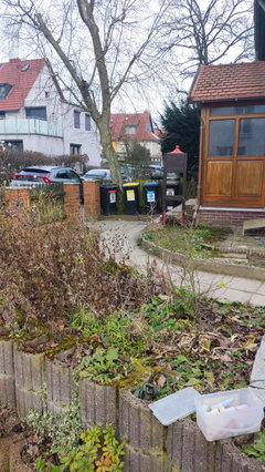 Ursprünglicher VerfasserVor 9 MonatenEine Planung ist erst am den Eingangbereich zu öffnen und hier Fahrräder und Mülltonnen unterzubringen plus ein ein kleines Tor, was dann in den Garten führt . Neben das Carport soll ein schmales Gartenhaus kommen, für Winterreifen und Rasenmäher.