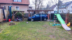 Desweiteren haben wir ein Carport im Garten, welches ich aufsperren möchte. Da wir sowieso einen neuen Zaun bauen, um den Garten möglichst blickdicht zu machen, wie in meiner ersten groben Planung gezeigt, sollte das das kleinste Problem sein.