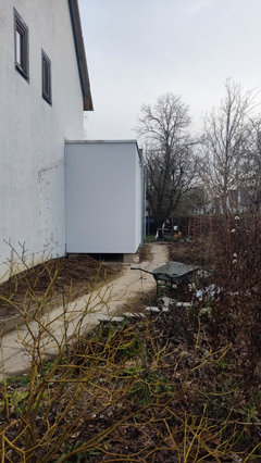 Ursprünglicher VerfasserVor 9 MonatenDas ist der aktuelle, noch sehr chaotische Zustand. Den fahrradunterstand haben wir dort behelfsmässig hingebaut und dieser soll definitiv nach vorne zum Hauseingang verlegt werden