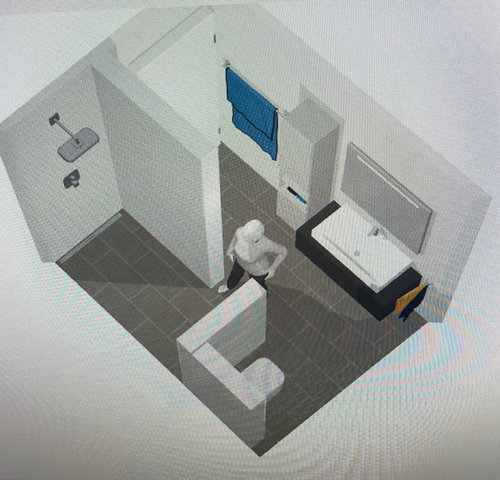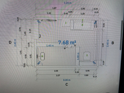 Wir bauen gerade unser Dachgeschoss eines Bungalows aus. Wir planen dort ein Badezimmer mit einem ca. Grundmaß von 2,40x3,20m. Ich habe hier ein paar Planungsskizzen erstellt.
