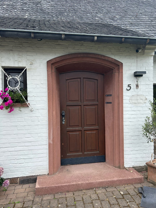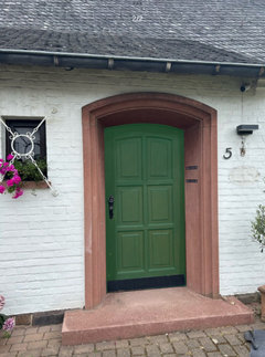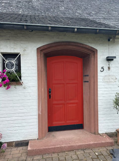 Kommentare (2)Boden und Decke eines Raumes sind beides ebene Flächen und beide im gleichen Raum, mehr aber haben sie nicht gemeinsam, denn die eine dienst zum Betreten, die andere zum Schutz. Deshalb legen wir auch kein Parkett auf die Decke... ;) Mit Fenster und Tür verhält es sich ähnlich. Das einzig gemeinsame, was sie haben ist, daß es Löcher in einer Wand sind. Die Fenster sind für Sichtbeziehungen zwischen innen und außen gedacht, die Tür aber verbindet innen und außen, indem sie sogar ein Durchschreiten erlaubt. So gesehen fällt es Ihnen vielleicht einfacher, die Tür als eigenständiges Element zu betrachten und auch in der Gestaltung von den Fenstern zu lösen. Oder deutlicher gesagt: sorgen Sie sich darum, daß der Eingang eine Einheit wird, und versuchen Sie nicht, Beziehungen zu Fenstern zu sehen, die nicht vorhanden sind ;)...mehrWelche Fassadenfarbe und Farbe Haustür?