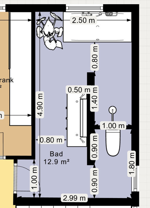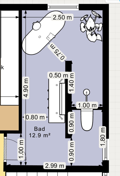 ich plane gerade unser Bad und würde mich sehr über euer Feedback zu dem Layout freuen (siehe Plan/Skizze im Anhang Bild 1/2)