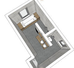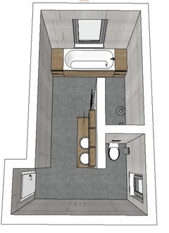 Zusatzidee: den Waschtisch ein Stück Richtung WC nicht mittig verschieben und dafür neben dem Waschtisch (Richtung Dusche) einen Hängeschrank vorsehen (siehe Anhang Bild 11/12)