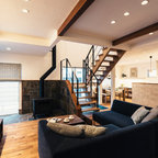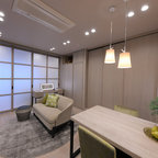 Offenes Modernes Wohnzimmer mit weißer Wandfarbe und grauem Boden in Tokio — Houzz