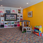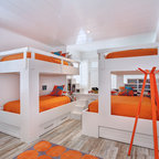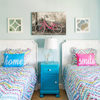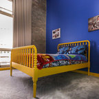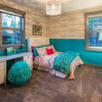 Klassisches Jugendzimmer mit Schlafplatz, bunten Wänden und braunem Holzboden in New York — Houzz