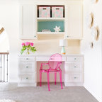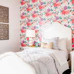 Amie Corley teen girl's bedroom. Fun wallpaper and bright color make this space warm and inviting. The Jacqui side table in green is the perfect addition to the space.