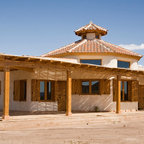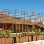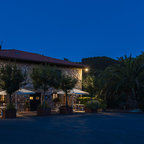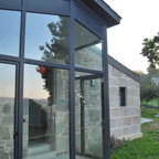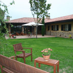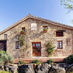 Dreistöckiges, Beigefarbenes, Großes Rustikales Haus mit Steinfassade und Flachdach in Barcelona — Houzz