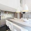 Dark cabinets with lights white wall