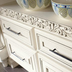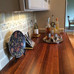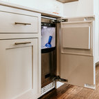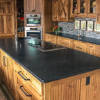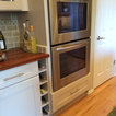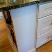 We refaced my client's old oak cabinets with Showplace Wood Products- Renew program. Wyland Interior Design Center is the local authorized dealer for Showplace Wood Product Cabinets. We went with Showplace's Galena Door Style in International full overlay, in paint grade hardwood with Mocha paint with Ivory glaze. We kept the existing granite slab countertops, but added a new Brazil Cherry wood countertop next to oven area.