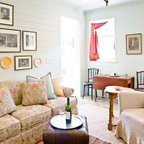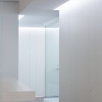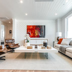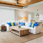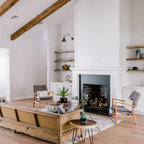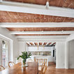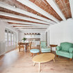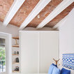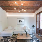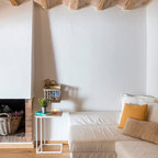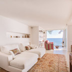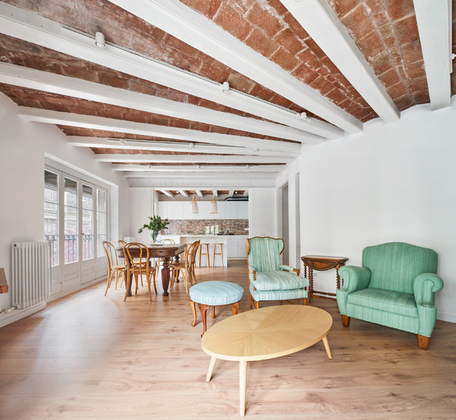 Offenes Mediterranes Wohnzimmer mit weißer Wandfarbe, hellem Holzboden und beigem Boden in Barcelona — Houzz
