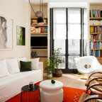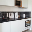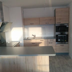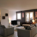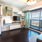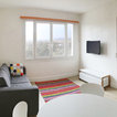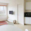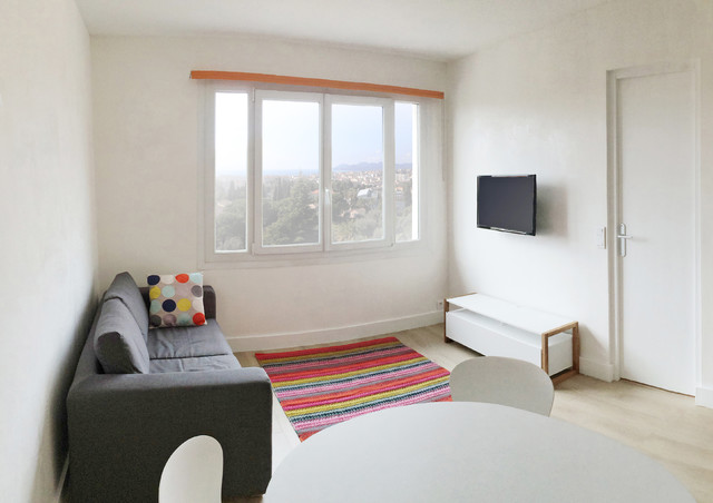 Ce studio de 30m2 n’avait pas été rénové depuis plus de 30 ans ! Après rénovation la cloison qui séparait la pièce à vivre de la cuisine existante a été déplacée pour agrandir cette dernière et y loger une chambre double, avec balcon privatif. Désormais le salon dispose d’une cuisine ouverte aménagée qui rend la pièce à vivre très agréable, et le canapé-lit permet un couchage supplémentaire. Ce petit studio mal conçu est désormais un beau T2 pour 4 personnes, idéal pour la location saisonnière. La rénovation et l’ameublement ont été conçus dans un souci d’économie afin d’optimiser l’investissement locatif, sans pour autant faire de compromis sur la qualité : à titre d’exemple, les cloisons sont toutes doublées pour le confort phonique, et une climatisation gainable est dissimulée dans le faux-plafond afin de devenir invisible.