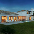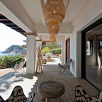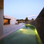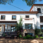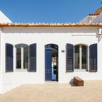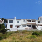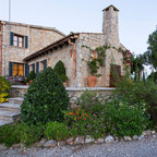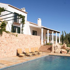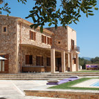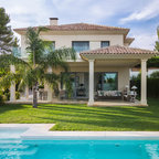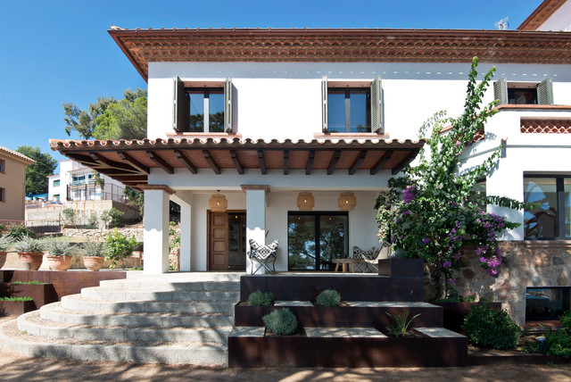 Großes, Zweistöckiges, Weißes Mediterranes Einfamilienhaus mit Mix-Fassade, Walmdach und Ziegeldach in Barcelona — Houzz