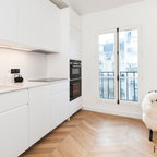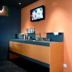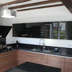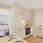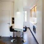Einzeilige, Mittelgroße Moderne Wohnküche mit Edelstahlfronten in Sonstige — Houzz
