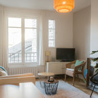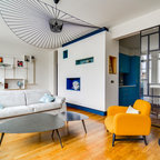 Großes, Fernseherloses, Offenes Modernes Wohnzimmer mit beiger Wandfarbe in Paris — Houzz