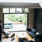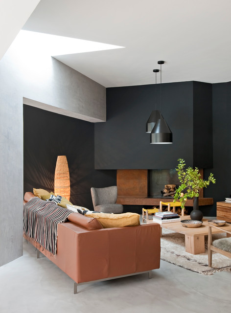 Modernes Wohnzimmer mit schwarzer Wandfarbe in Sonstige — Houzz