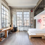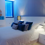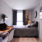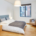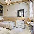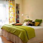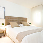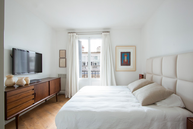 Mittelgroßes Klassisches Hauptschlafzimmer ohne Kamin mit weißer Wandfarbe und braunem Holzboden in Madrid — Houzz