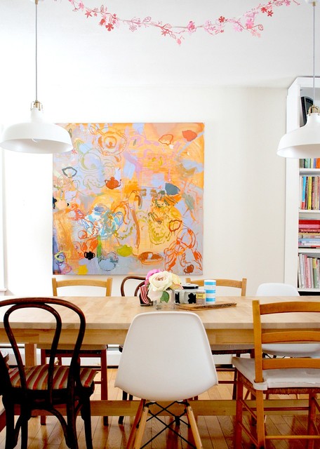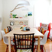 Mis-matched chairs. Bright color.