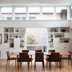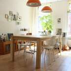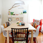 Stilmix Esszimmer mit weißer Wandfarbe und hellem Holzboden in Burlington — Houzz
