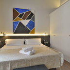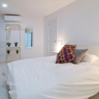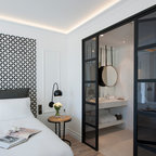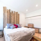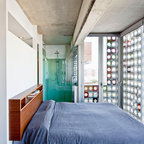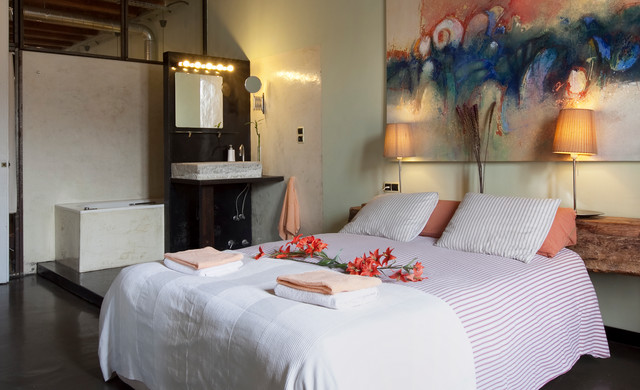 Großes Industrial Hauptschlafzimmer ohne Kamin mit bunten Wänden in Barcelona — Houzz