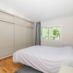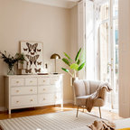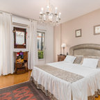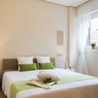 Mittelgroßes Klassisches Hauptschlafzimmer ohne Kamin mit weißer Wandfarbe und hellem Holzboden in Barcelona — Houzz