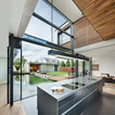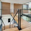 Vom Wohnbereich geht eine Glastür in den Garten, und vom Essbereich führt eine Glasschiebetür auf die Terrasse. Diese endet nicht etwa an dem Schwimmteich oder dem danebenliegenden Flachwasseruferbereich, sondern „setzt sich über den Schwimmteich fort“, wie Schwab betont.